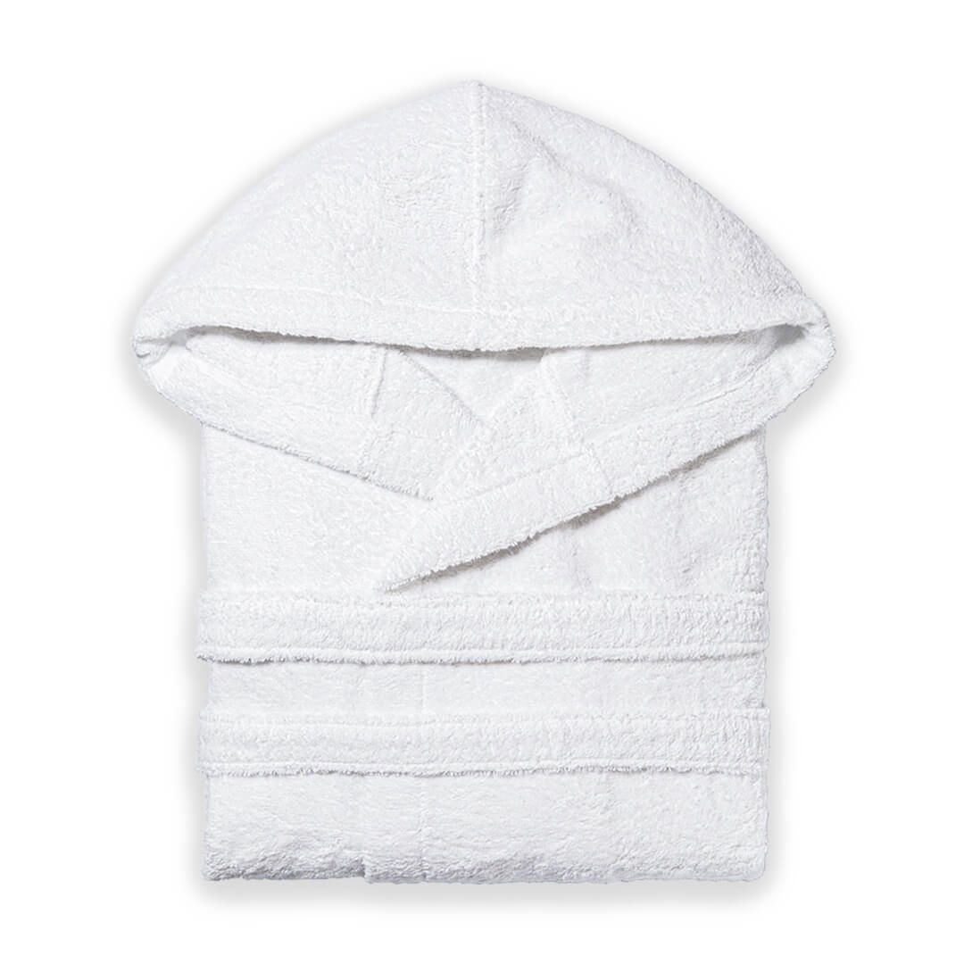 UNISEX-BADEMANTEL AUS WEISSEM BAUMWOLLFROTTEE-TEDDY