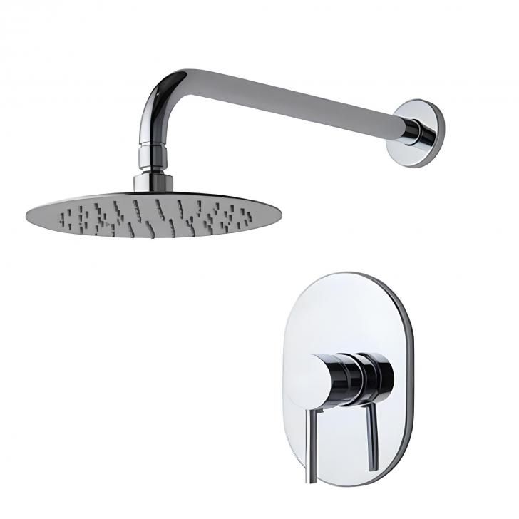 RUNDER DUSCHKOPF VERCHROMT MIT RUNDEM BRAUSEARM UND EINBAUMISCHER